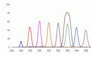 采用大狹縫,盡量提高入光量。使用背照式面陣CCD,具有高達90%的量子效率(光子轉(zhuǎn)換為光電子的效率),在制冷下,可以達到1000:1的信噪比,這個配置為熒光測量提供了強有力的科學(xué)手段。內(nèi)置的消除二級衍射的濾波片可以濾出二級和三級衍射。