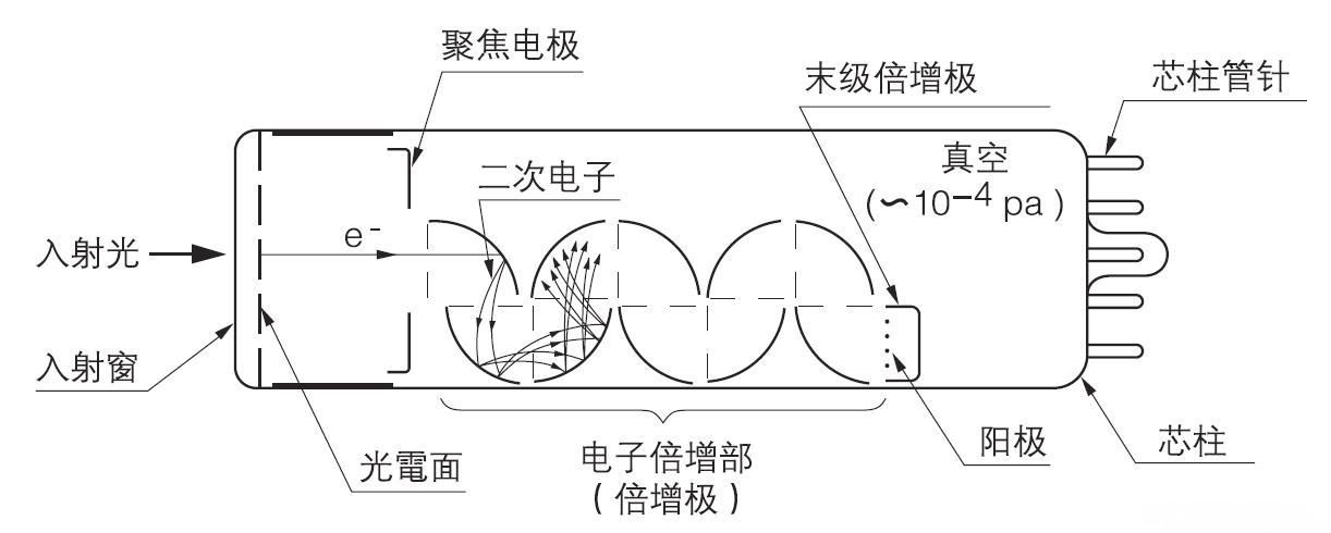 光電倍增管(Photomultiplier Tube,簡(jiǎn)稱PMT)是一種真空玻璃器件,可將光信號(hào)轉(zhuǎn)化為電信號(hào),因超高靈敏度和快速響應(yīng)等特點(diǎn)備受關(guān)注。在檢測(cè)光譜方面,其可探測(cè)約100nm~1μm范圍內(nèi)的光信號(hào)。此外,在更短波方向,如γ射線、X射線探測(cè)使用的輻射探測(cè)器,以通過(guò)各種閃爍體轉(zhuǎn)化成可見(jiàn)光,然后再通過(guò)PMT進(jìn)行檢測(cè),其關(guān)鍵器件也是PMT。