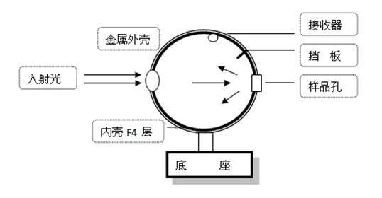 樣品孔,在球體上適當位置裝有接收器,并在接收親器與樣品孔之間設以擋板,以防樣品的一次反射光進入接收器。