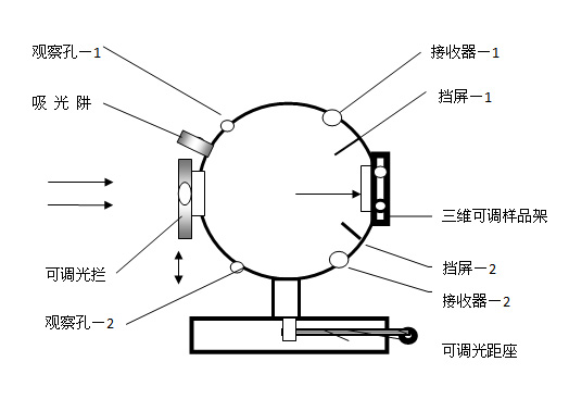 1. 入光孔的孔徑是可變的,借可調光攔來改變入射的光通量,從而改變球內表面的照度;